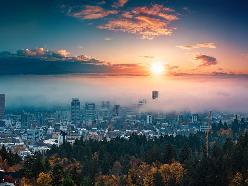 Pictures of city / nature / people should be used in combination to tell a (positive) story.